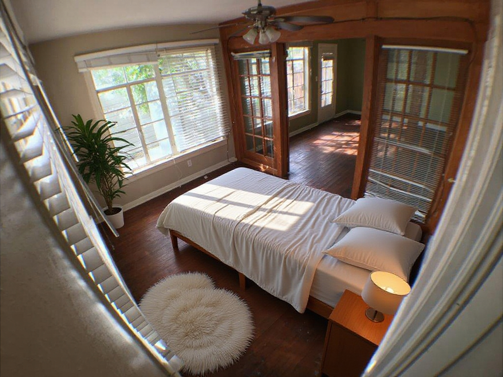 The home is down the street from Stars Cafe. i-35 and 31st St. Individual deadbolt for your room. Lots of windows. Tall ceilings. Ceiling fan. Shares bathroom with 1 person.
