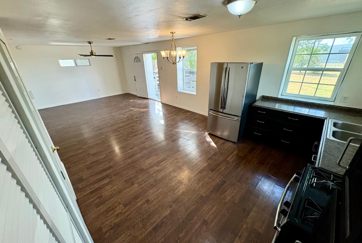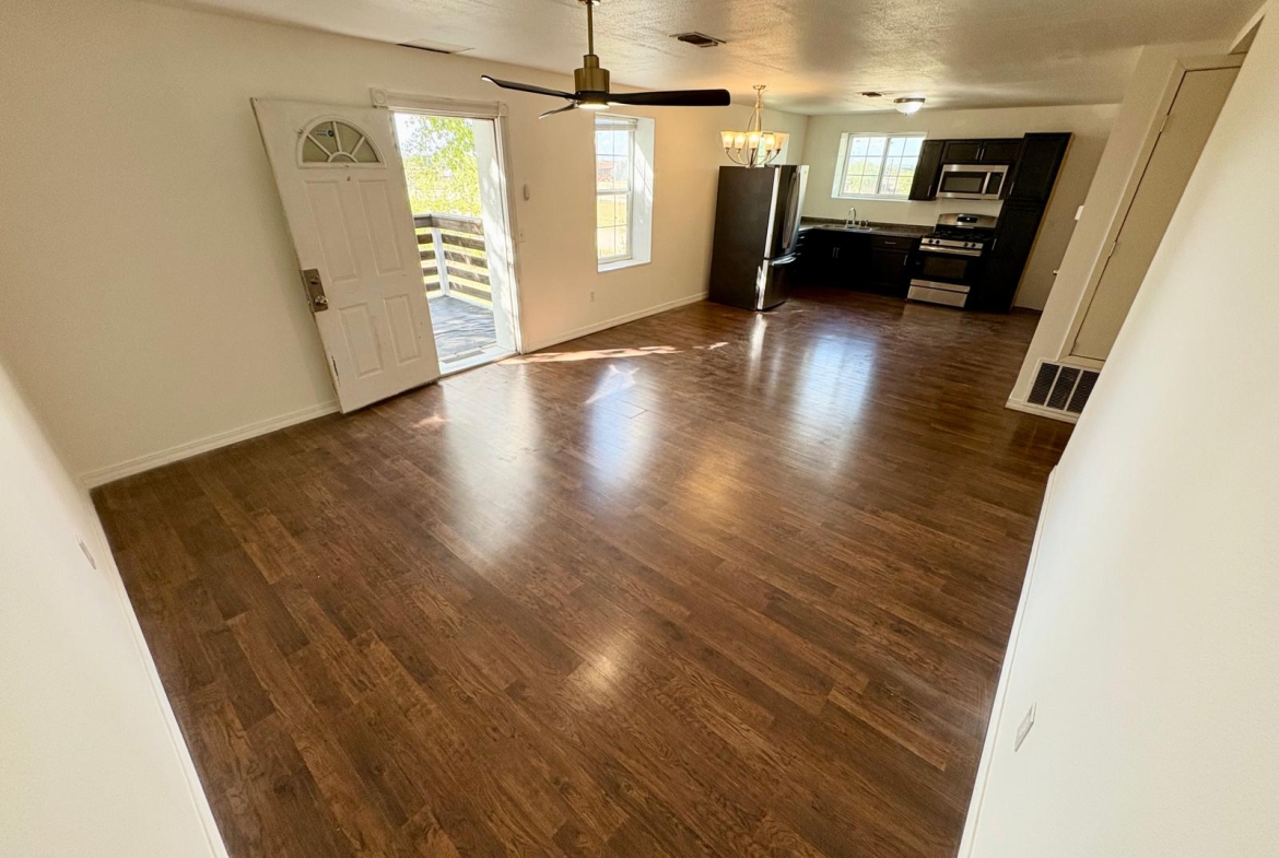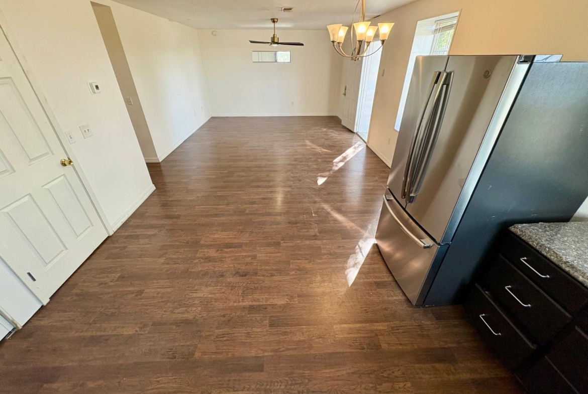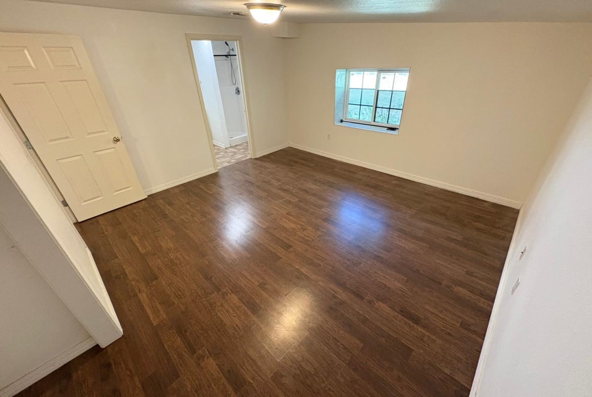 The two full bathrooms are designed for both speed and relaxation: one offers a modern stand-up shower, while the other boasts a huge tub—perfect for soaking away the day. Large yard. Super private and secure lot with a gate at the front. Landlord pays electricity and water!