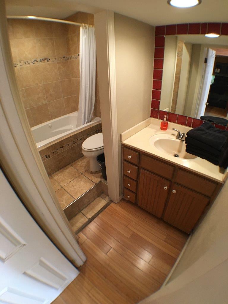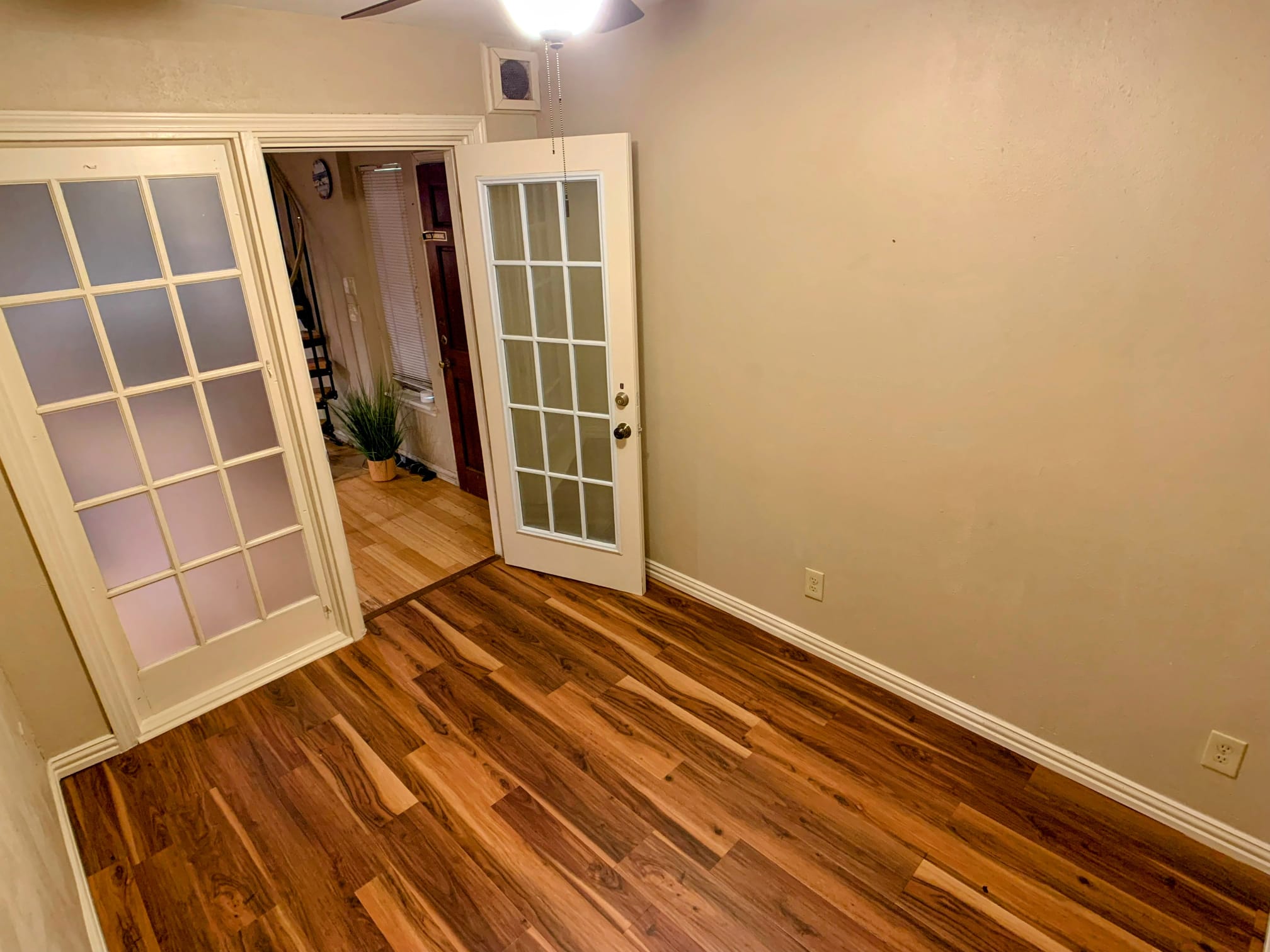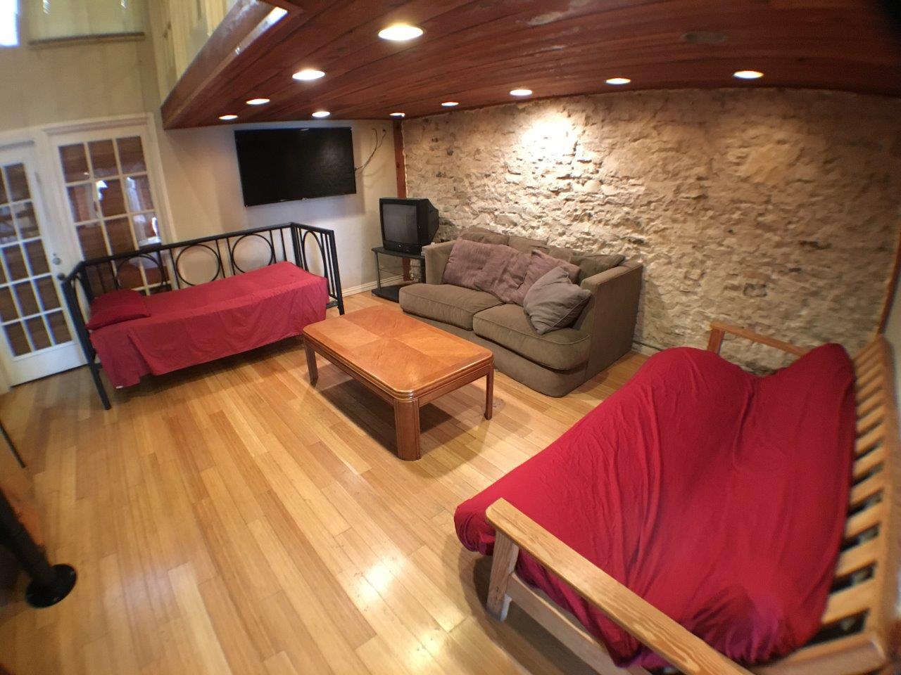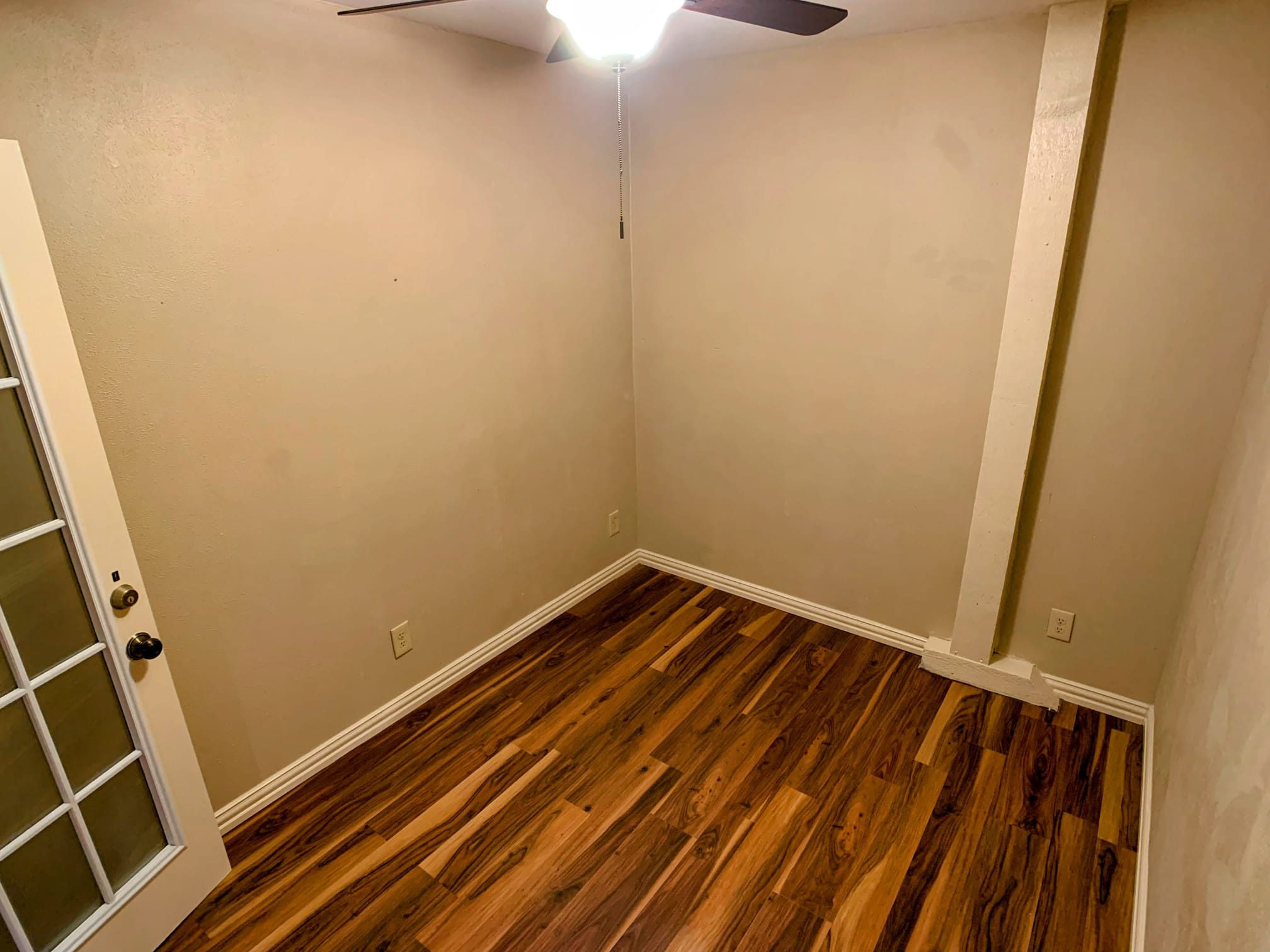 We are happy to offer our unit (411 G1) with an in-room sink, private mirror, and a built-in closet for $499 per month + $49 for amenities. This is a 6-bedroom, 2-bathroom condo. The room is located on the second floor with a view overlooking the living area. Our historic building is on 6th St in downtown Austin. Month-to-month lease, but you can lease indefinitely.