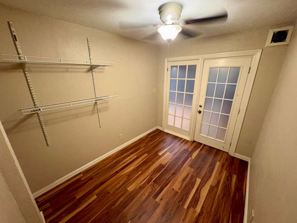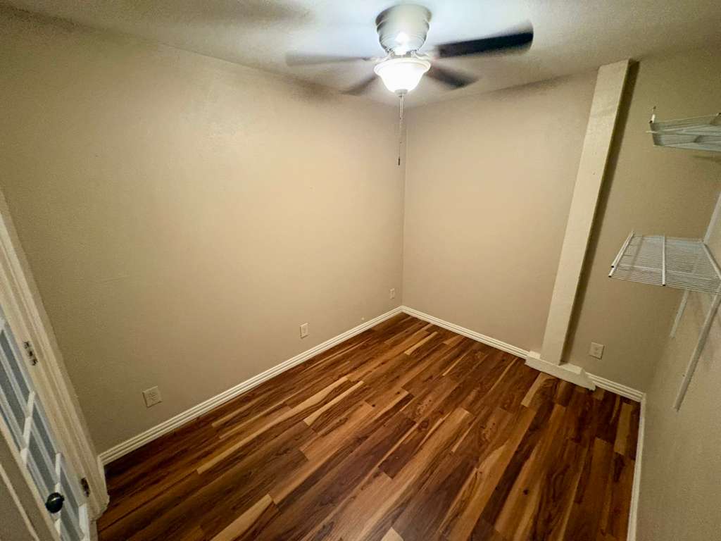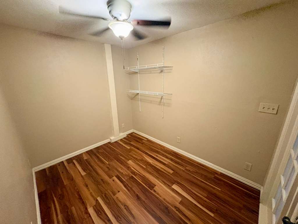 We are happy to offer our unit (411 G1) with an in-room sink, private mirror, and a built-in closet for $599 per month + $49 for amenities. This is a 6-bedroom, 2-bathroom condo. The room is located on the second floor with a view overlooking the living area. Our historic building is on 6th St in downtown Austin. Month-to-month lease, but you can lease indefinitely.