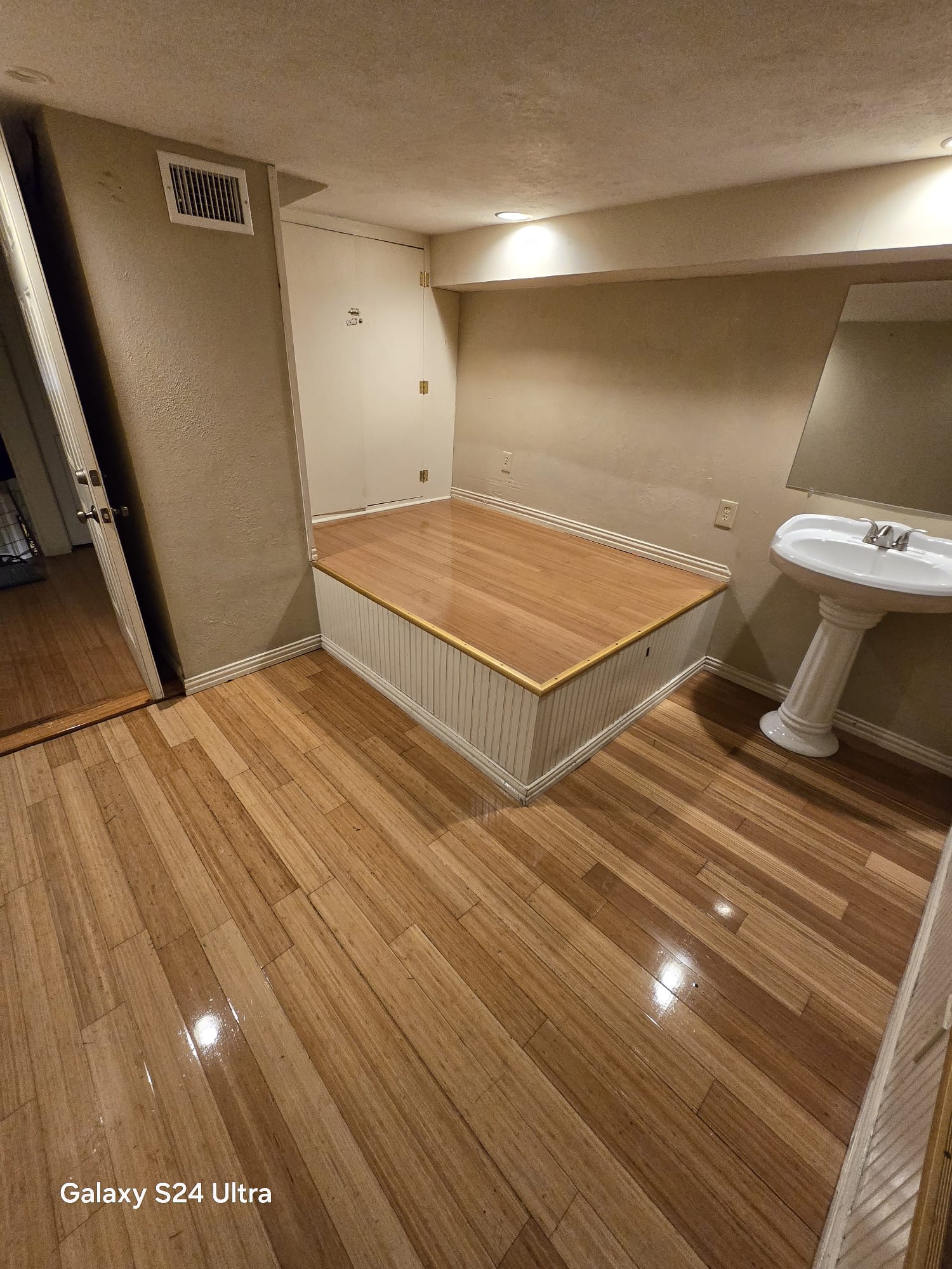 We are happy to offer our unit (G5) with an in-room sink, private mirror, and a built-in closet for $550 per month + $49 for amenities. This is a 6-bedroom, 2-bathroom condo. The room is located on the second floor with a view overlooking the living area. Our historic building is on 6th St in downtown Austin. Month-to-month lease, but you can lease indefinitely.